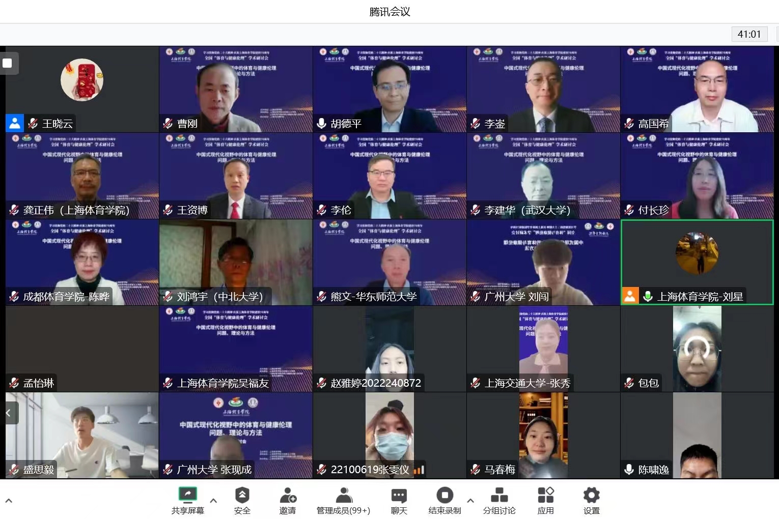 来自中国人民大学、武汉大学、大连理工大学、华东师范大学、湖南师范大学、中北大学、广西师范大学、长治学院、北京体育大学、上海体育学院、成都体育学院等高校,哲学、法学、医学、教育学等国内不同学科和研究领域的专家学者,以及体育与健康伦理研究领域卓有成绩的青年学者,聚焦“中国式现代化视野中的体育与健康伦理:问题、理论与方法”主题,展开学术交流。
