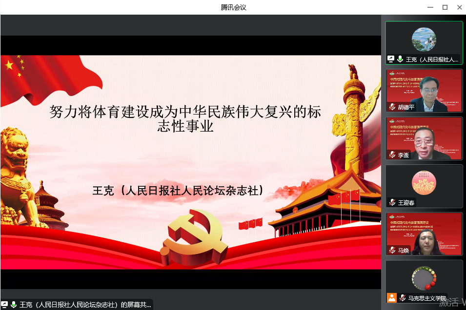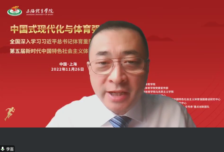 李琪教授以“体育现代化和中国式现代化”为主题进行报告。他指出,党的十八大以来的十年奋斗历程中,以习近平同志为核心的党中央带领14亿人民,把新时代中国特色社会主义现代化建设不断推向前进,为走出一条中国式现代化之路从实践和理论两大方面进行了艰辛探索和富有成效的经验总结。从主体体量的维度来看,“14亿多人整体转向现代化”中的这个“整体”,是在中国共产党坚持以人民为中心、德智体美劳一体化发展方针指导下的全民整体,是“健康中国”人格化全面显现的整体;从发展目标的维度来看,就是要坚持做到人民至上,为满足人民对美好体育生活的向往,实现全体人民的共同发展、共同富裕、共同健康幸福;从文明协调的维度来看,新时代的体育现代化,不仅要着力推进现代体育科技手段升级换代、体育基础设施的现代化,还要大力促进人的全面发展,在展示中华体育文化软实力方面做出新的探索;从生态保护的维度来看,要坚持走节约资源、保护环境、绿色低碳的现代体育发展道路,并大力培养具有环保意识的新一代体育人才;从国际关系的维度来看,体育现代化发展要为推动构建新型国际关系,为全世界和平进步、发展共赢、平等相处、友好合作作出重要贡献。