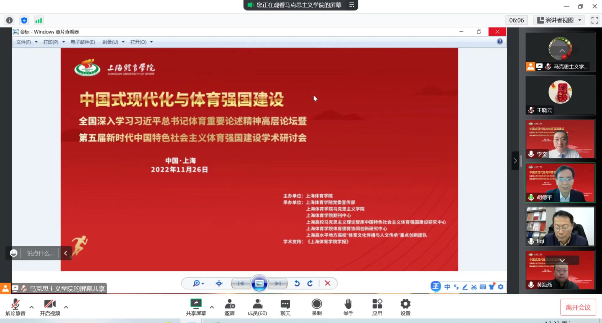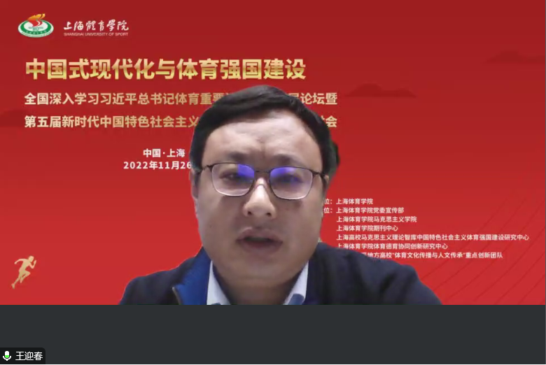 本次会议由上海体育学院举办,党委宣传部、太阳成集团tyc33455、期刊中心、上海高校马克思主义理论智库中国特色社会主义体育强国建设研究中心、上海体育学院体育德育协同创新研究中心、上海高水平地方高校“体育文化传播与人文传承”重点创新团队联合承办,是上海体育学院庆祝建校70周年系列学术活动之一。来自中共中央党校(国家行政学院)、中国财政科学研究院、人民日报社人民论坛杂志社、上海市社联、上海人工智能实验室、西安交通大学、华东师范大学、山西大学、上海外国语大学、上海体育学院、上海格物文化发展研究院等高等院校、科研院所、智库机构的专家学者,围绕“中国式现代化与体育强国建设”的会议研讨主题,展开多学科交流和跨学科对话。