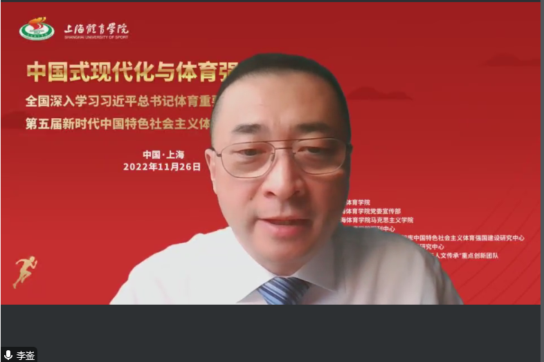 为深入学习宣传贯彻党的二十大精神,深刻领会习近平总书记体育重要论述精神,准确把握中国式现代化与体育强国建设的理论逻辑与实践路向,2022年11月26日下午,全国深入学习习近平总书记体育重要论述精神高层论坛暨第五届新时代中国特色社会主义体育强国建设学术研讨会在上海体育学院举办。校党委书记李崟向会议致欢迎辞并作主旨报告。