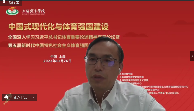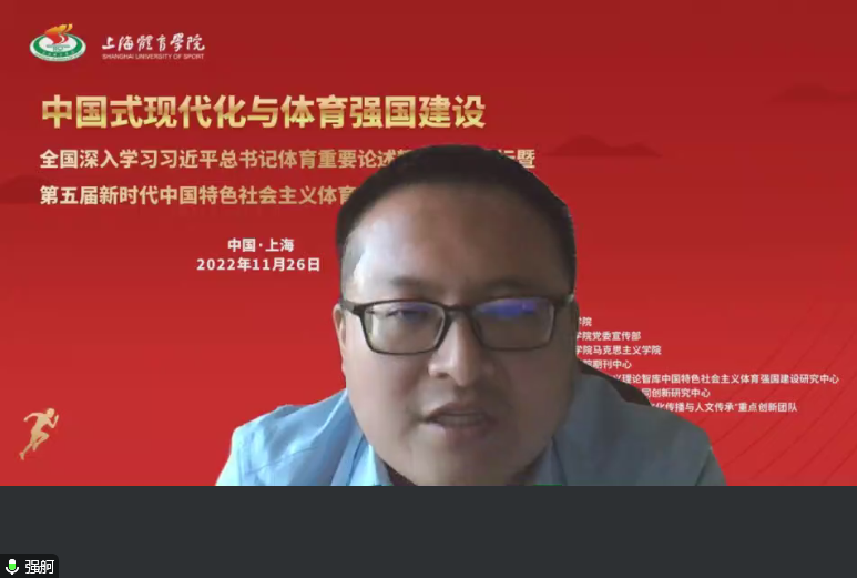 中国共产党领导是中国式现代化的关键特征和成功基因。强舸教授围绕党的领导与体育强国建设作了发言。他认为,作为中国式现代化的一方面,体育强国建设同样需要建立在充分发挥党的领导优势上。一是充分发挥体育组织中党的基层组织的作用,要根据党章规定在体育管理的系统工程中发挥好战斗堡垒作用。二是党中央从整体上谋划、统筹竞技体育、群众体育各项事业,推进远大蓝图的逐步实现。三是发挥好党建的监督保障作用,特别是深入推进反腐败斗争,有效促进体育某些重点领域的发展。此外,也要注意体育事业的特殊处,在中华民族伟大复兴的进程中,体育事业更需要个性张扬、舍我其谁的运动员精神。