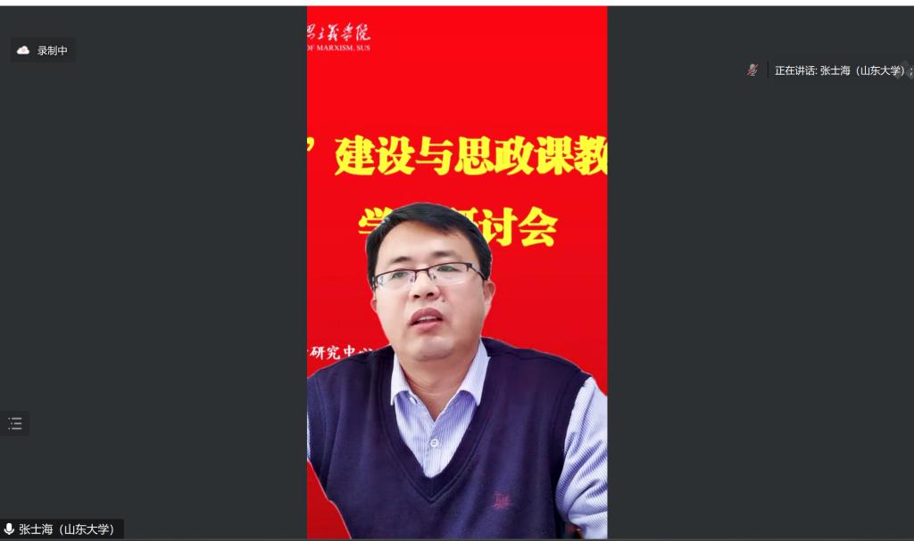 “大思政课”是一项系统的工程,需要通过调动全社会资源力量,建设大课堂,搭建大平台,建好大师资。张士海教授结合山东大学思政课实践,阐发了“大思政课”建设的精神实质与主要着力点。他认为,“大思政课”建设的目的在于让学生切实了解大世界、增强大历史观增强理论认同,提高教学实效性。重视“大思政课”教学,不能忽视思政小课堂的课堂教学这一主阵地。思政课教学要坚持内容为王,发挥教师主导和学生主体作用,在解决学生思想困惑、讲清道理上下功夫。山东大学近年来对讲清楚教学重难点问题进行探索,以找出课程疑难问题为前提,课堂解决疑难问题为关键,提升教师科研能力为根本,借鉴学界研究成果为保障,整体系统地讲深讲透讲活习近平新时代中国特色社会主义思想,取得了良好成效。