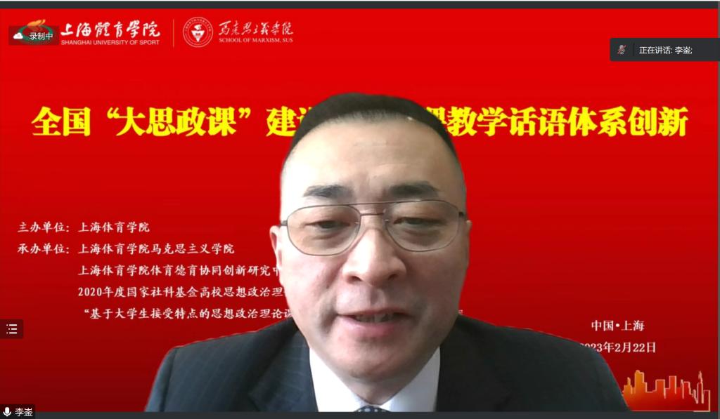 在习近平总书记“大思政课”重要论述提出2周年之际,为深入贯彻落实党的二十大精神和习近平总书记关于新时代思政课改革创新的重要论述精神,全面推进“大思政课”建设,由上海体育学院主办的全国“‘大思政课’建设与思政课教学话语体系创新”学术研讨会成功举行。上海体育学院党委书记李崟出席会议并致辞。