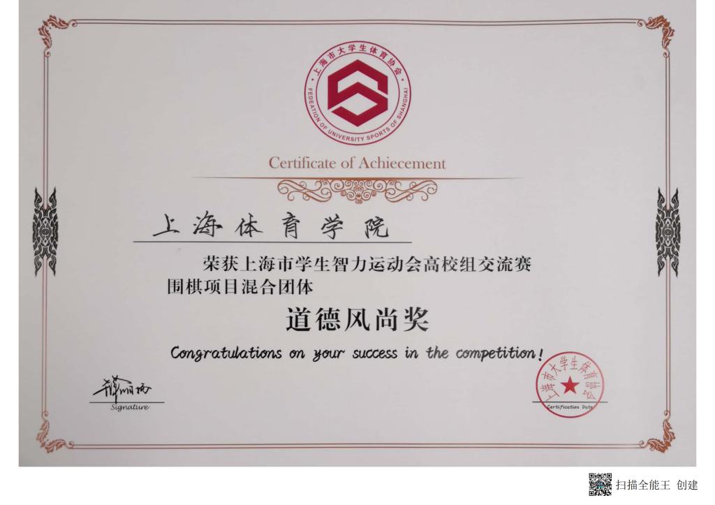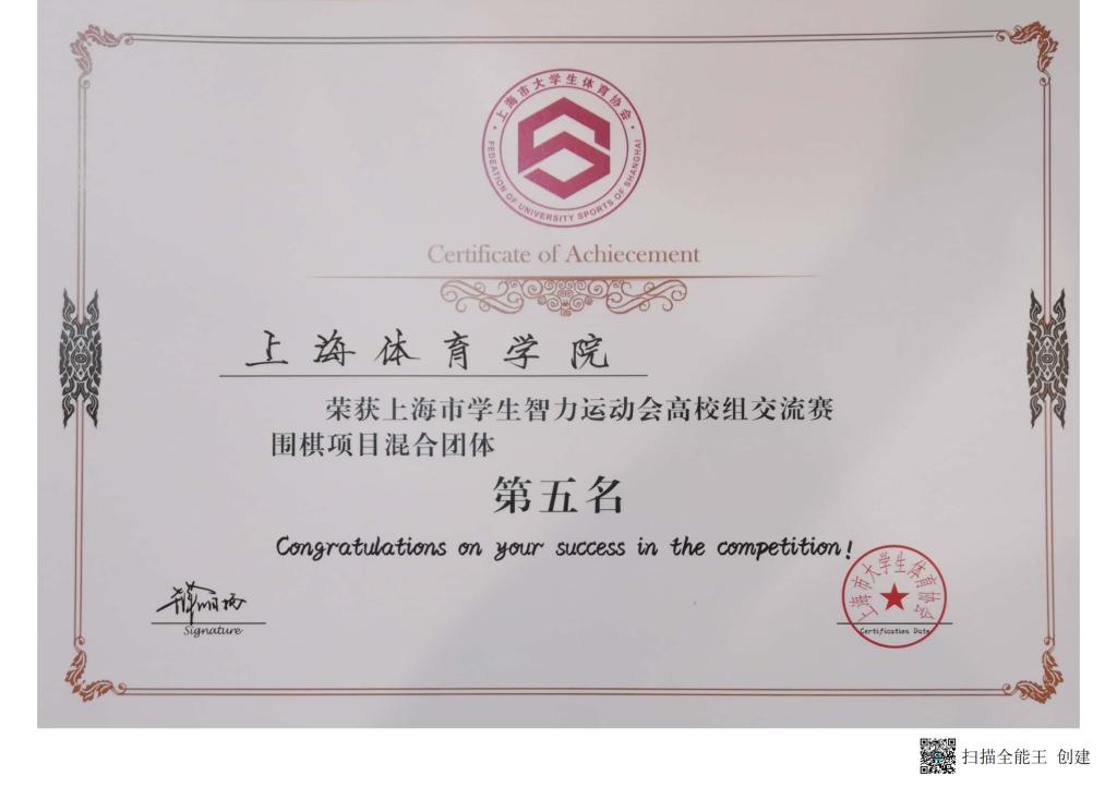 5月20-21日,由上海市教育委员会和上海市体育局主办的“上海市学生智力运动会高校组交流赛”在松江区九亭第五小学举行。我校组建的临时智力运动队参加比赛,获得围棋项目混合团体“道德风尚奖”,围棋项目混合团体(吴倚凡、桂琪峰)获得第五名,金晨昱获得围棋男子个人第七名。