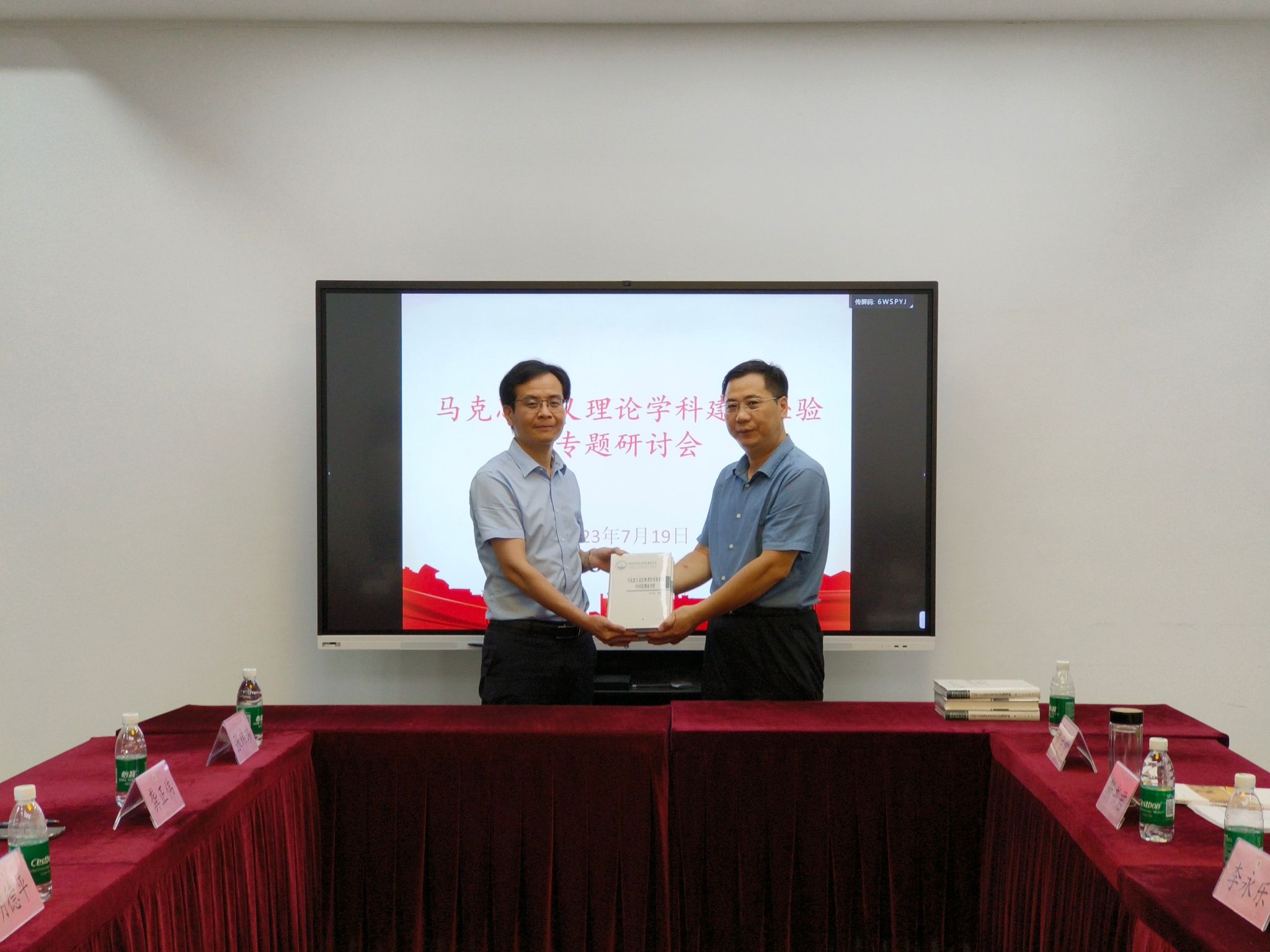 会上,靳书君教授向我院赠送了他的著作《马克思主义经典著作重要术语中国化渊流考释》一书,该著作入选国家哲学社会科学成果文库。